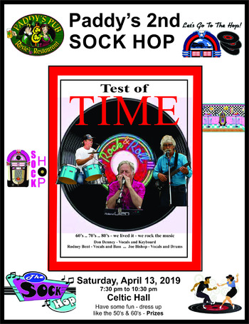 Kick off spring with an evening upstairs at the Celtic lounge. For the second year we are having a sock hop - come dance and have some fun with some of the old favourites and more!