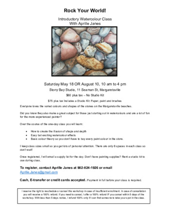 Everyone loves the varied colours and shapes of the stones on the Margaretsville beaches. Did you know they also make a great subject for those just starting out in watercolours and are a lot of fun for the more experienced painter?