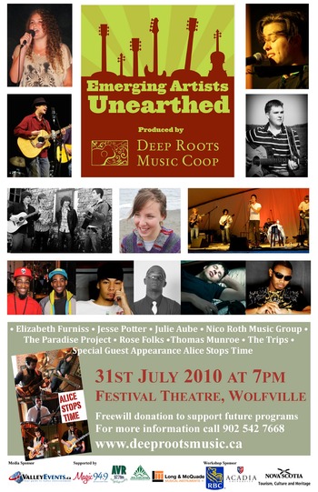Come out and support these up and coming artists. Supported by Magic 949, AVR and The Trail Shop, Long adn McQuade, Acadia, Workshop sponsor RBC, Media Sponsor ValleyEvents.ca
