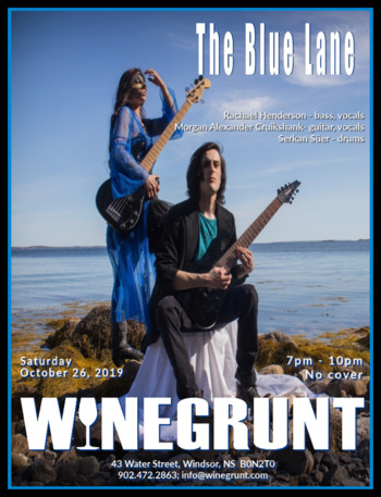 The Blue Lane are Rachael Henderson on bass and vocals, Morgan Alexander Cruikshank on guitar and vocals, Serkan Süer on drums and they bring their spooky jazz rock sounds to @winegrunt. No cover. Just in time to get you in the right mood for Hallowe’en! Spooky good music at "the heart of the Windsor strip!"
