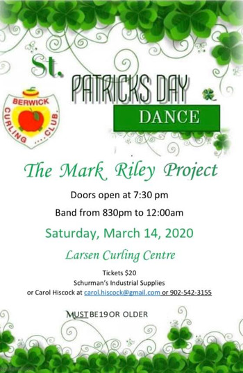 The Mark Riley Project returns to the Berwick Curling Club for their St. Patrick's Day Dance. Last year was a hit so get your tickets soon.