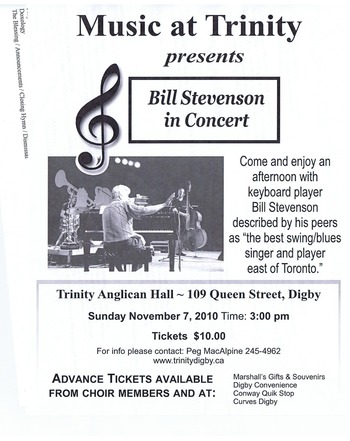 Pricing: $10.00. Advance tickets available. www.trinitydigby.ca
