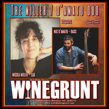 Nicola Miller (sax) and Nic D'Amato (bass) bring some very cool jazz to Winegrunt. No cover. Catch these two at "the heart of the Windsor strip" to really make your weekend. We encourage reservations.