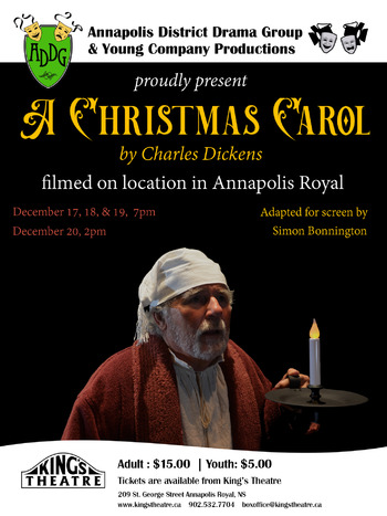 Following the widely-acclaimed success this summer of their first ever Stage-to-Screen production, the Annapolis District Drama Group is joining forces with Young Company Productions to create a family-favourite Christimas-time spectacle that is certain to entertain: a screen-play version of “A Christmas Carol”, by Charles Dickens. – pandemic-willing, to be screened at King’s Theatre the weekend before Christmas!