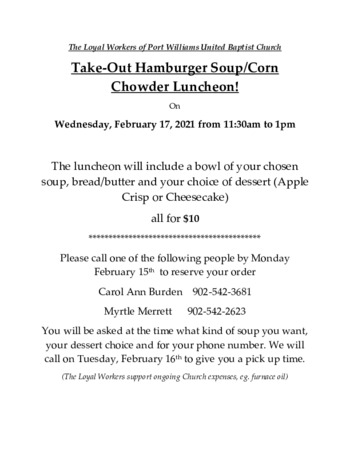 Take-Out Hamburger Soup/Corn Chowder Luncheon!