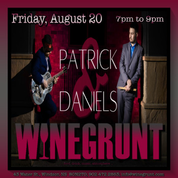 Jesse Patrick (guitar, vocals) and Tyler Daniels (percussion) bring That Friday Feeling to Winegrunt. No cover. Their hip, soulful, bluesy sound will set your Friday on fire at "the heart of the Windsor strip!" Reservations are recommended.