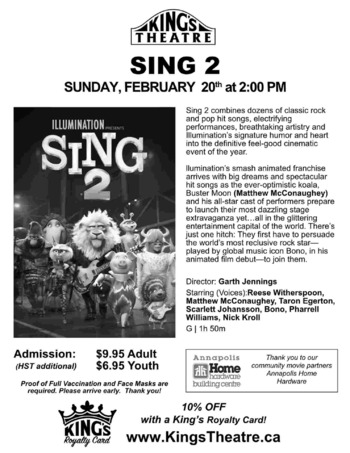Starring (Voices):Reese Witherspoon, Matthew McConaughey, Taron Egerton, Scarlett Johansson, Bono, Pharrell Williams, Nick Kroll