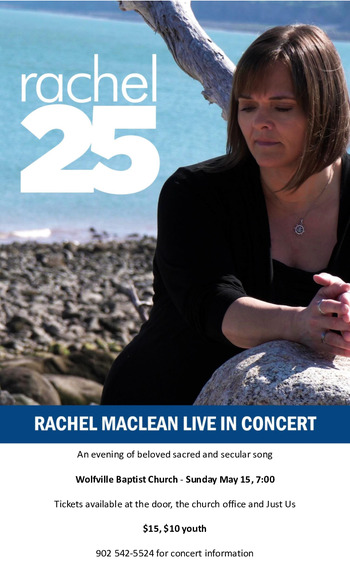 Where to buy Tickets: Just Us, Wolfville; Wolfville Baptist Church office, at the door