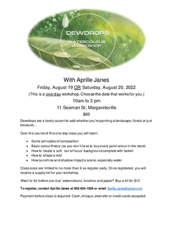 To register, contact Aprille Janes at 902-824-1926 or email [email protected]