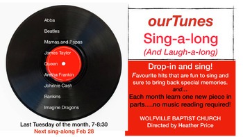 Sing-a-long with popular songs of the 60's through the 2000's! Heather Price offers another series of ourTunes, this time with no music reading required...just singing the songs we love! And an added bonus now, one new song each month that we will learn in parts and perform for each other. Sing for community, sing for joy, and sing for peace in our now troubled but still hopeful and beautiful world.