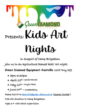 Green Diamond Equipment is happy to present three evenings of agriculture themed art classes in support of Camp Brigadoon.