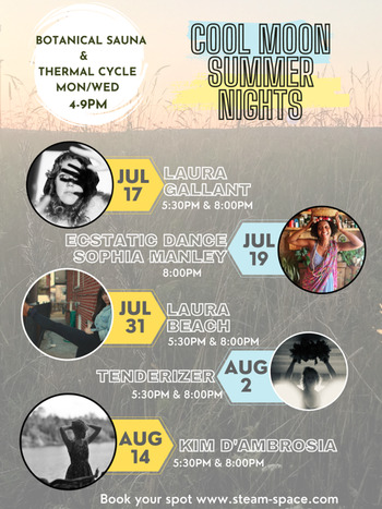 During the new moon weeks we will go inward, reflect and set intentions and draw our focus on water. These sessions could be on the quieter side but we also flow with the current. During the full moon weeks the focus is outward drawing focus on fire, creative exchanges with the light of the moon reflecting care back to the body. All sessions include communities of plants and people.