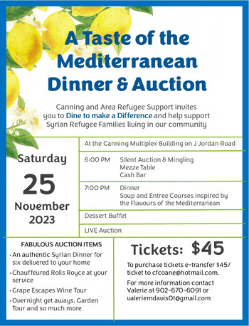 A Taste of the Mediterranean Dinner and Auction Fundraiser to support Syrian Refugee Families living in our community.