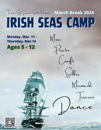 Tir na nÓg March Break Camps explore Irish culture for ages 5 - 11 in time for St. Patrick's Day. This years' theme is Irish Seas! Campers will be learning about Irish pirates, mermaids and selkies in a way that opens up the imagination with full wonder and awe! Irish whistle, dance, art and more are learned through the week as campers follow their experience map to get their treasure!