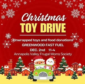 Annapolis Valley Frugal Moms Toy Drive for Christmas Hampers.
