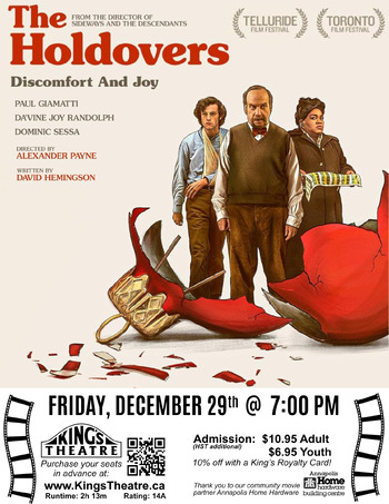 From acclaimed director Alexander Payne, THE HOLDOVERS follows a curmudgeonly instructor (Paul Giamatti) at a New England prep school who is forced to remain on campus during Christmas break to babysit the handful of students with nowhere to go. Eventually he forms an unlikely bond with one of them — a damaged, brainy troublemaker (newcomer Dominic Sessa) — and with the school’s head cook, who has just lost a son in Vietnam (Da’Vine Joy Randolph).