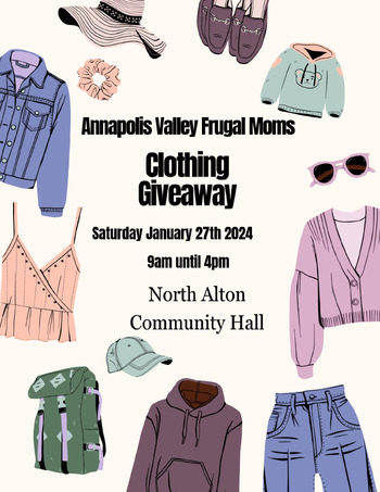 Come one come all. Free clothing hosted by Annapolis Valley Frugal Moms Society.