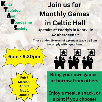 Come and join KTABS for tabletop games! Bring along what you like to play.