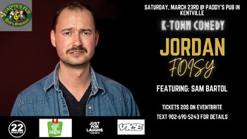 Join us for a great night of stand-up with "K-Town Comedy"! Your usual host, Cassian Ferlatte, will be welcoming the hilarious Jordan Foisy (head writer of "This Hour Has 22 Minutes") in the headlining spot, and featuring the very talented Sam Bartol (winner of the Hubcap Comedy Festival Contest in 2023).