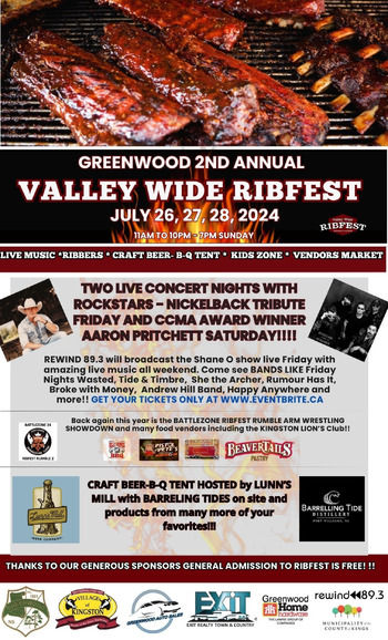 Valley Wide Ribfest in Greenwood is back this year and EVEN BETTER!! In addition to mouthwatering ribs, Craft Beer BQ hosted by Lunn's Mill with special vendors including Barreling Tides Distillery, a super fun kids zone and craft market!!