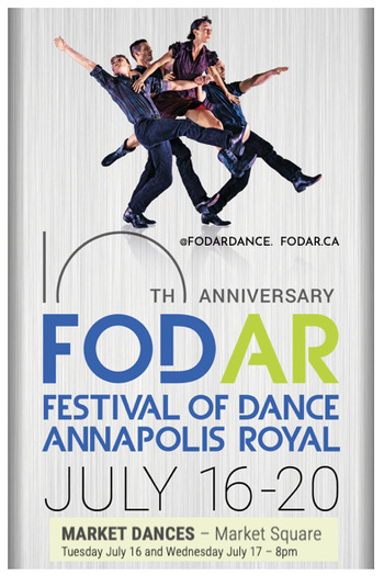 Soak in the scenery and the setting sun and watch contemporary dance in a relaxed and casual atmosphere. Sometimes quirky, sometimes hilarious, sometimes poignant — always stimulating! Inaugurated in 2020, Market Dances has become a popular part of Festival of Dance Annapolis Royal (FODAR). It’s your chance to see most of the festival MainStage artists performing works created especially for FODAR's 10th Anniversary. Ever watched a tap-flamenco dance-off? Now's your chance! Raining? No worries! The event will take a leap from Market Square to the Annapolis Royal Legion.
