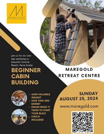 Join us for the Beginner Cabin Building Workshop at the beautiful Maregold Retreat Centre in Victoria Beach. Surrounded by nature, trees, fields, and the stunning Bay of Fundy, it's the perfect setting to kickstart your cabin-building journey.