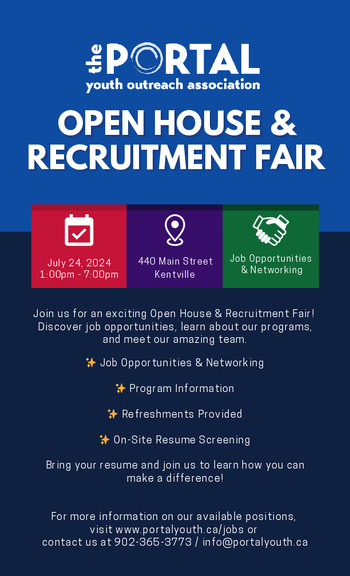 For more information about available job opportunities, please visit our website at www.portalyouth.ca/jobs. If you have any questions about the event, feel free to email us at [email protected].
