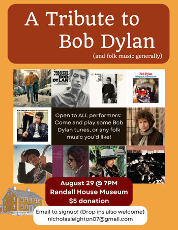 We are very excited to be hosting a Bob Dylan tribute night (along with any other folk music you'd like to play)! It is an open mic style kitchen party so anyone is welcome to bring a guitar or their voice and play as many songs as they want! If you would like to sign up, email our summer student at the address on the poster. Drop ins are also welcome!