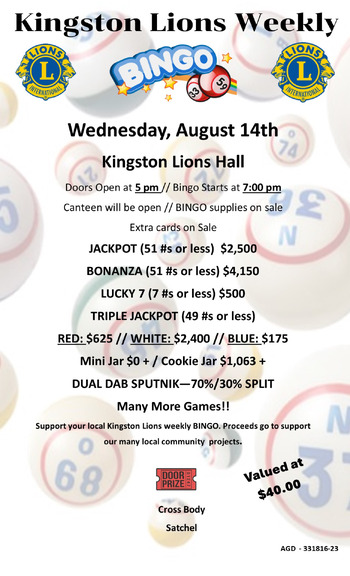 Price of cards varies with games being played. Canteen on site. Bingo supplies available for purchase. 50/50 and breakopen tickets on sale.