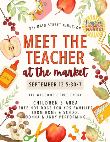 Once again the Kingston & District School will be holding their "Meet the Teacher" night at the Market from 5:30 pm to 7 pm!! Free Hot dogs for KDS students provided by the Home & School Association.