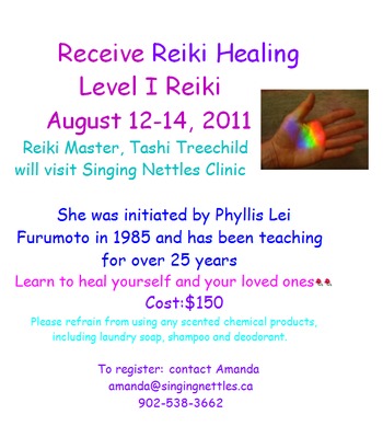 Reiki Master, Tashi Treechild will visit Singing Nettles Clinic