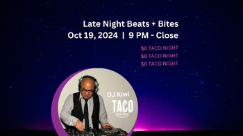 We're bringing back DJ Kiwi for our late night $6 TACO bites and a little fun!