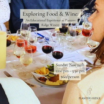 -Sample a curated selection of Planters Ridge wines and thoughtful food pairings