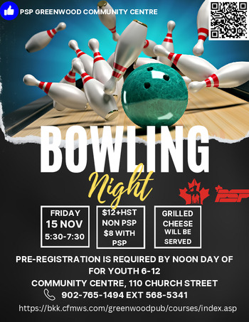 Thanks to our friends at the 14 Wing bowling alley, we are able to offer an hour of glow bowling.