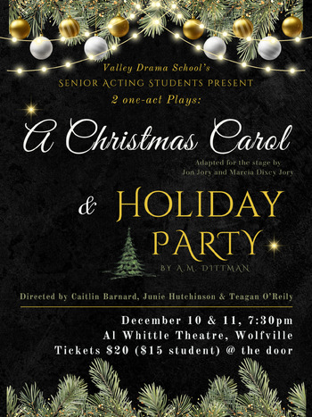 Valley Drama School’s Senior Acting students present a festive evening at the theatre! Join us for two one-act plays to celebrate the holiday season. The show is suitable for families and people of all ages.