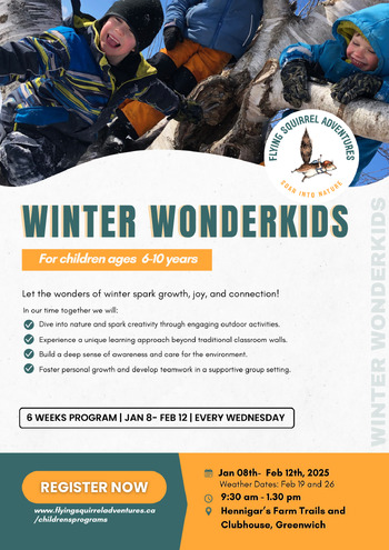 Winter time is a child's delight: snow flakes on lashes, snowy surfaces for sliding, building sculptures, tracking animals, etc. There is no end of fun and learning to be had. We are excited to open up our popular nature programming for the winter season. With access to a cozy in-door warming space as well as dynamic terrain for outdoor exploration and adventures, we are ready to embrace winter with your children.